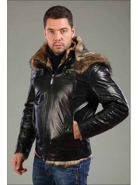 Стильная мужская дубленка на волчьем меху. Куртка застегивается на молнии и дополнена меховым капюшоном. С внешней стороны модель отделана кожей, имеет несколько удобных внешних карманов, декорированных одиночными пуговицами. Капюшон крепится на молнии и в расстегнутом виде дополнительно защищает лопатки. Длина изделия – 75 сантиметров. Куртка превосходно сочетается с любым мужским стилем и служит надежным защитником от морозов.
