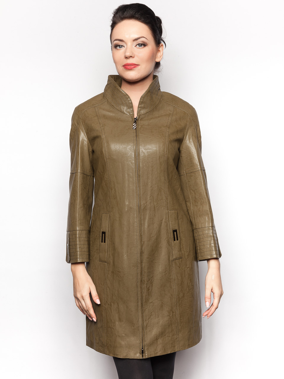 Материал верха - эко кожа Материал подклада - полиэстер Наполнитель - нет Длина изделия - 86 см. Цвет - серо-коричневый Застежка - молния Сезон - осень/весна Пол - женский