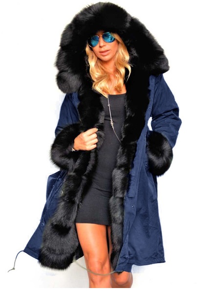 Женская зимняя парка на искусственном мехе синяя