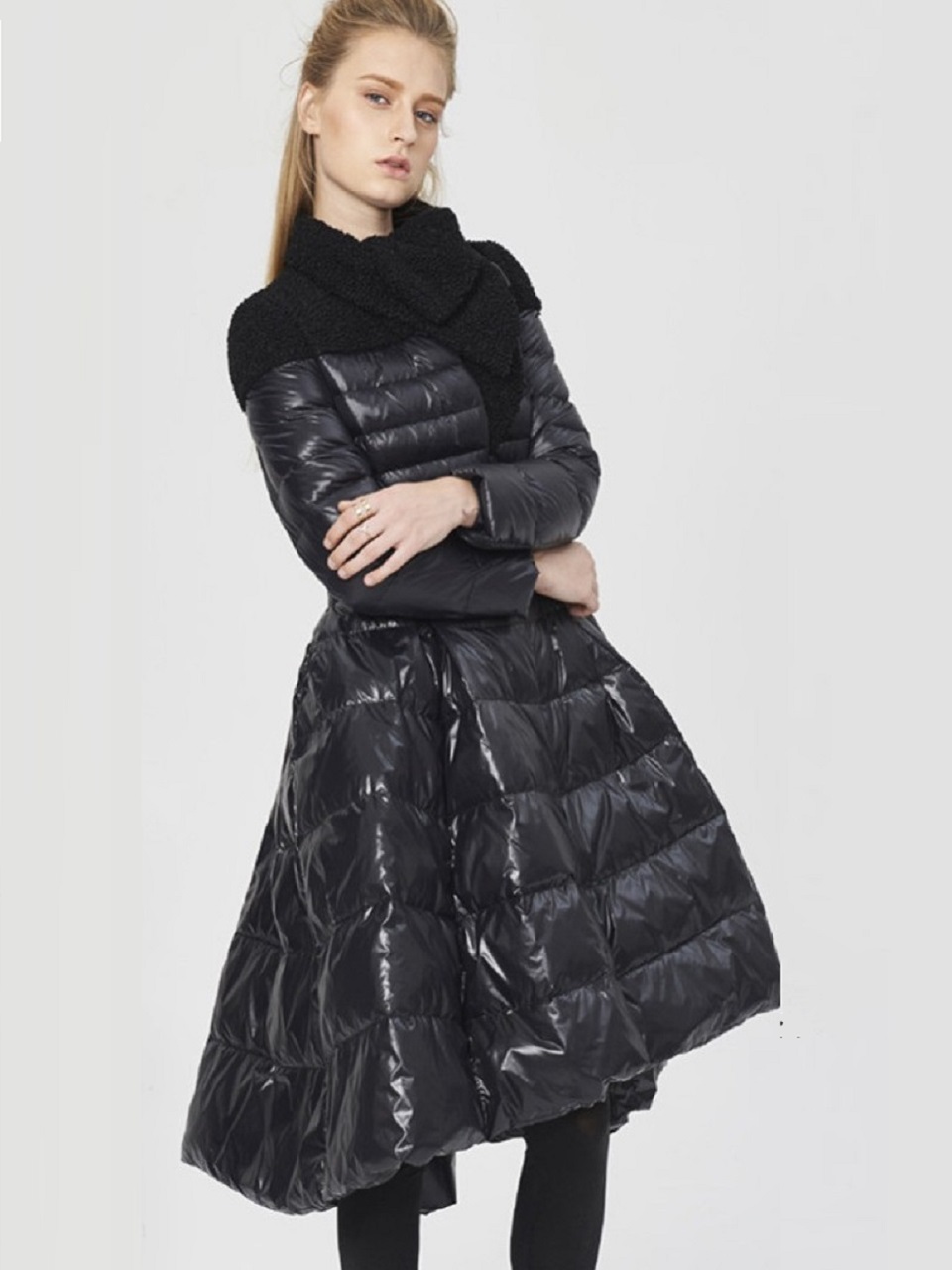 Женский пуховик с юбкой черный